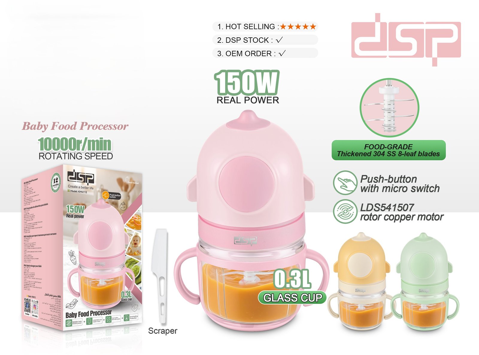 With its compact size, the DSP Baby Food Processor is easy to store and even easier to use. Whether you’re creating delightful fruit purees or nutrient-rich vegetable mixes, this device simplifies the process so you can focus on bonding with your child. Experience convenience redefined with a processor that’s crafted to meet the needs of every growing family.
