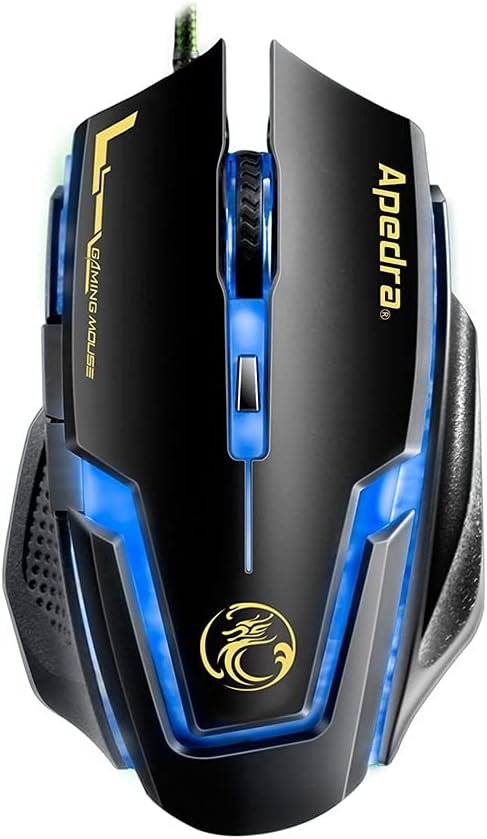 Computer Wired Mouse Apedra iMICE A9 High Precision Gaming Mouse LED Four Color Controlled Breathing Light USB 6 Buttons 3200 DPI Wired Optical Gaming Mouse..