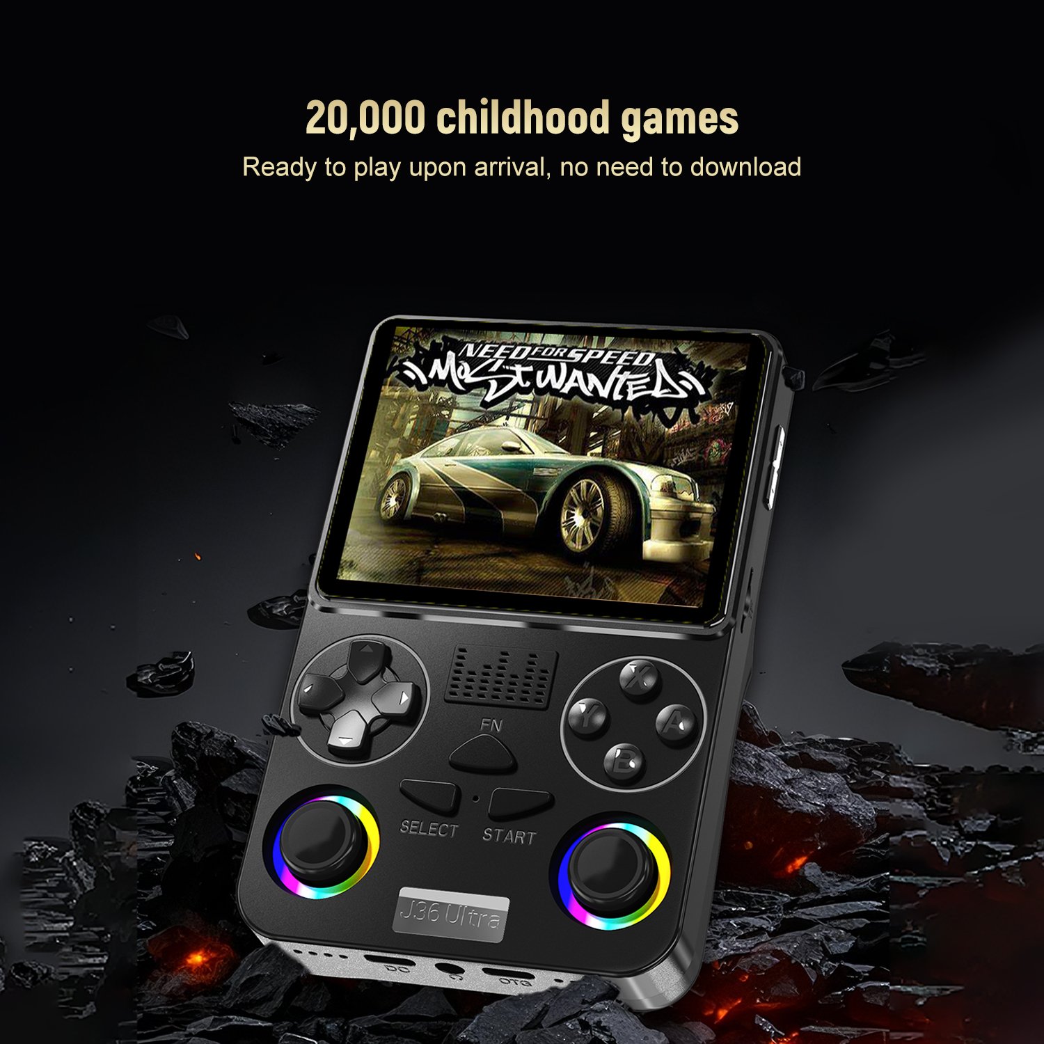 J36 Ultra Handheld Game Console 3.5 Inch Linux 8-Core A7 3000mAh 10000+ Games WiFi 64GB 640X480 Dual Player Online Battle Portable Retro