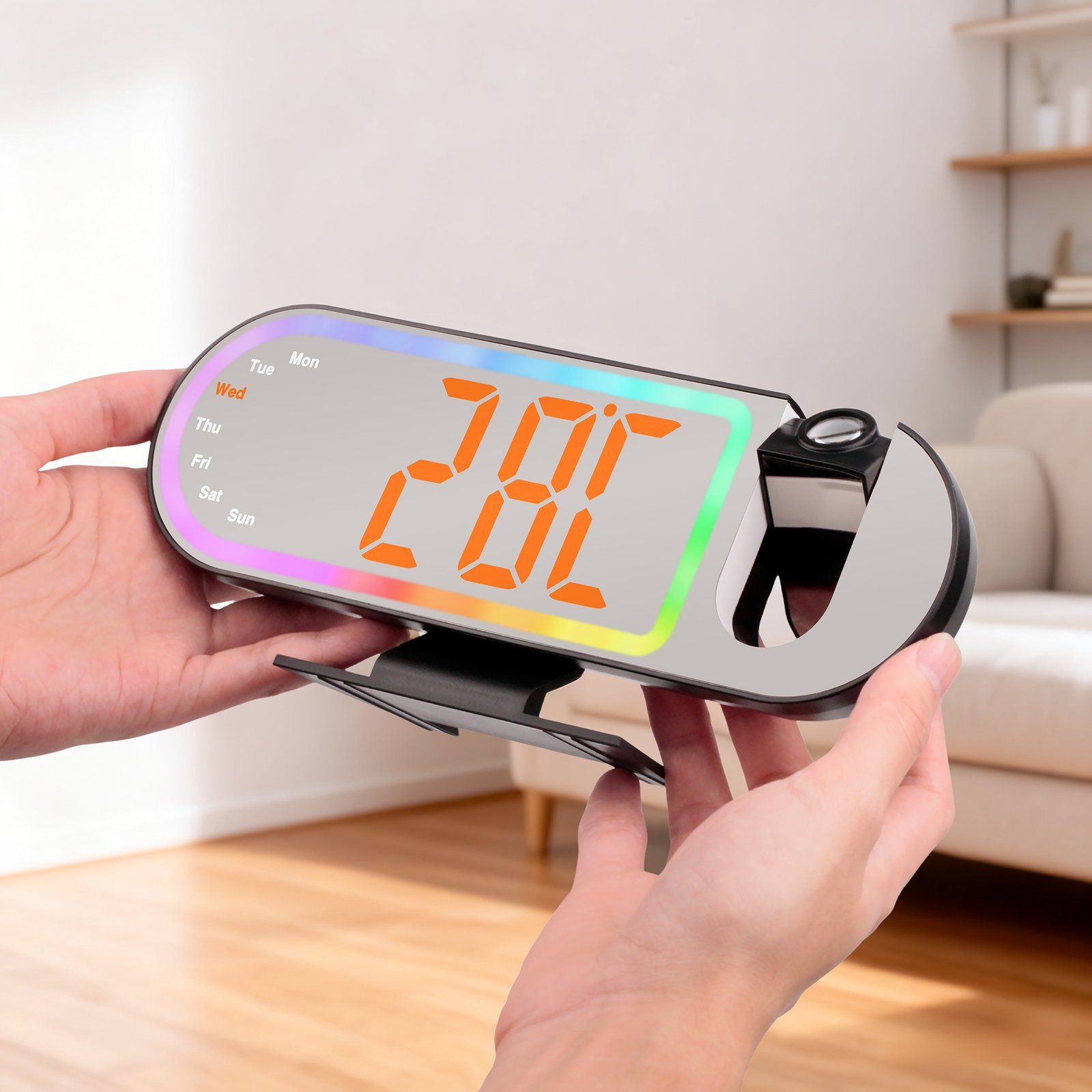 3827LP LED Digital Smart Alarm Clock This plastic digital alarm clock features LED display acting as a desk clock table electronic desktop device with USB charging 180 Time Projector Function Equipped with a 180 time projector ideal for bedroom use as a sunrise alarm clock with snooze function Multi Functional Household Device Doubles as a household thermometer combined with a digital nixie clock meeting daily time and temperature needs Versatile Placement Works as a table clock or plastic wall clock suitable for wall decoration as a decorative wall clock 3d wall clock or wall watch Home Decor Appeal The sleek design fits as luxury wall art home decor complementing spaces like living rooms pairs with tv wall mount setups Durable Build & Practical Features Made with sturdy material (ABS plastic) comparable to led wooden clock aesthetics serves as live selling products custom clocks option
