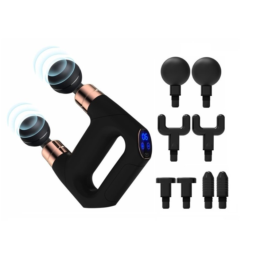 Electric hand held massager gun deep tissue percussion muscle fascial gun massager with double head