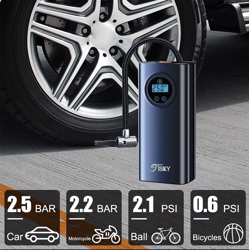 Emergency Light, Power Indicator, Tire Pressure Monitor, Portable, Automatic Shut Off, fast inflate