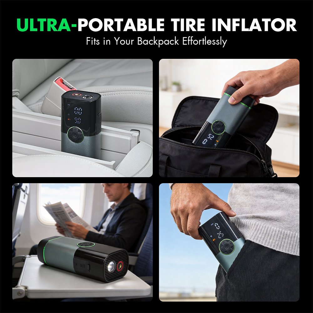 Take the hassle out of inflating your tires with our Portable Cordless Air Compressor. Designed for both car and bike tires, this compact device offers unmatched ease and portability. Whether you’re at home, on the road, or at the trail, it delivers reliable tire inflation whenever you need it.