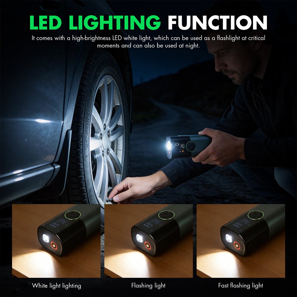 Equipped with a digital pressure gauge and an integrated tire pressure monitor, this air compressor ensures accurate and consistent results every time. Say goodbye to guesswork and hello to precision with its easy-to-read display that allows you to set and monitor the desired tire pressure effortlessly.